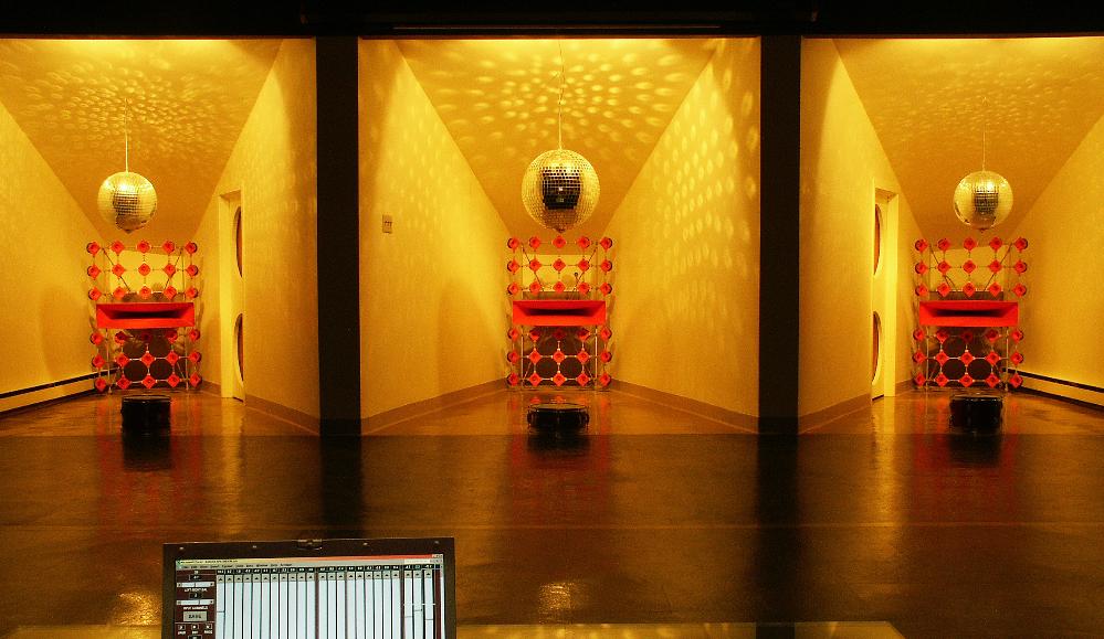 The first unit designed was an automatic lighting controller that responds to the music. Mounted in a half-rack outside the left edge of this photo, It